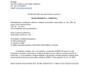 Uchádzačky žiadame, aby svoje žiadosti s označením KONKURZ spolu s dvomi
