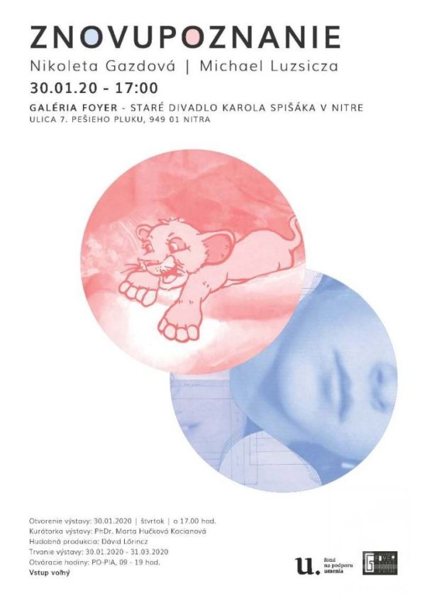 Prezentácia tvorby dvojice mladých autorov Nikolety Gazdovej /1997/ a Michaela Luzsiczu /1996/ absolventov Fakulty výtvarných umení, Akadémie umení v Banskej Bystrici nitrianskej umeleckej verejnosti nie je neznáma. Svojou tvorbou sa v nitrianskom prostredí už prezentovali. Nikoleta Gazdová predstaví svoju voľnú komornú tvorbu prostredníctvom digitálnej koláže, asamblážami, fotografickou tvorbou a objektami v kombinovanej technike – vosk – textil. Michael odprezentuje svoje maliarske artefakty v technike olej na plátne. Ich tvorba sa prelína v dvoch paralelných rovinách navzájom komunikujúcich medzi sebou. Autori pracujú s intímnou tematikou, detstva, spomienok, mužskej a ženskej telesnosti a rodinných vzťahov.